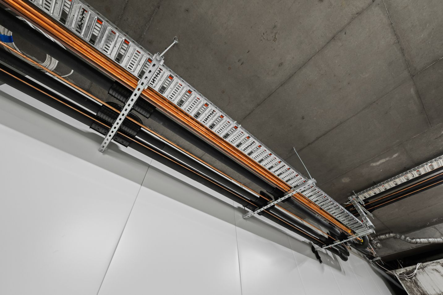 - Power and distribution: Circuit installations, outlet placement for workstations and equipment, switchboard connections, and distribution boards.